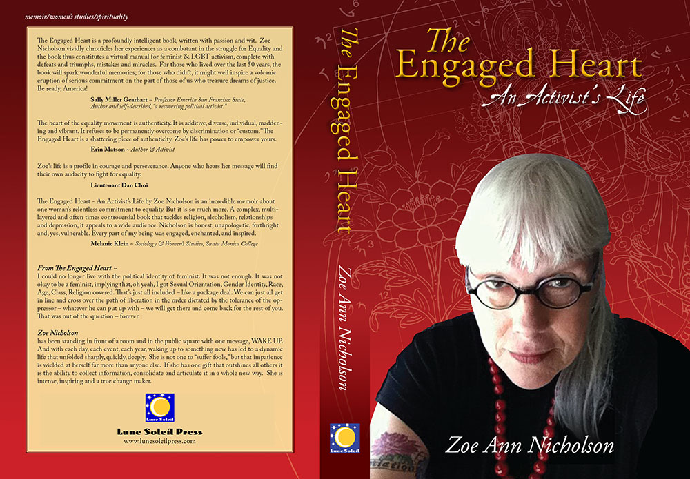 The Engaged Heart is a profoundly intelligent book, written with passion and wit. Zoe Nicholson vividly chronicles her experiences as a combatant in the struggle for Equality and the book thus constitutes a virtual manual for feminist & LGBT activism, complete with defeats and triumphs, mistakes and miracles. For those who lived over the last 50 years, the book will spark wonderful memories; for those who didn’t, it might well inspire a volcanic eruption of serious commitment on the part of those of us who treasure dreams of justice. Be ready, America!
